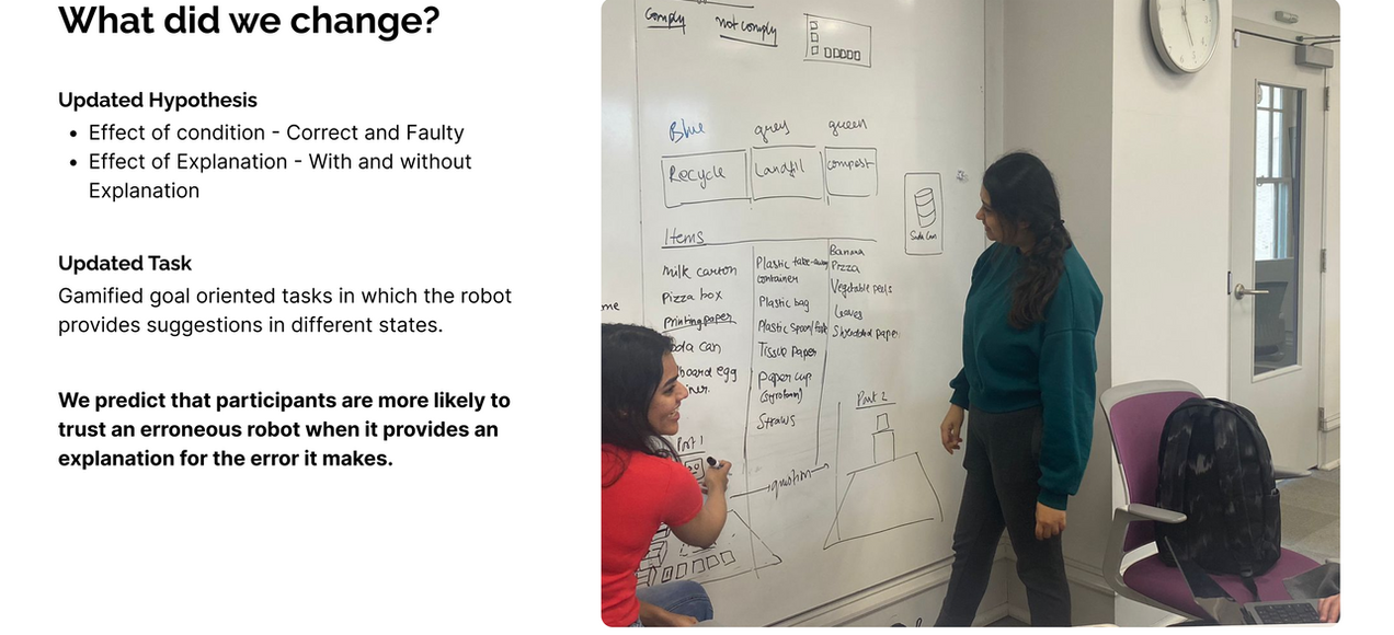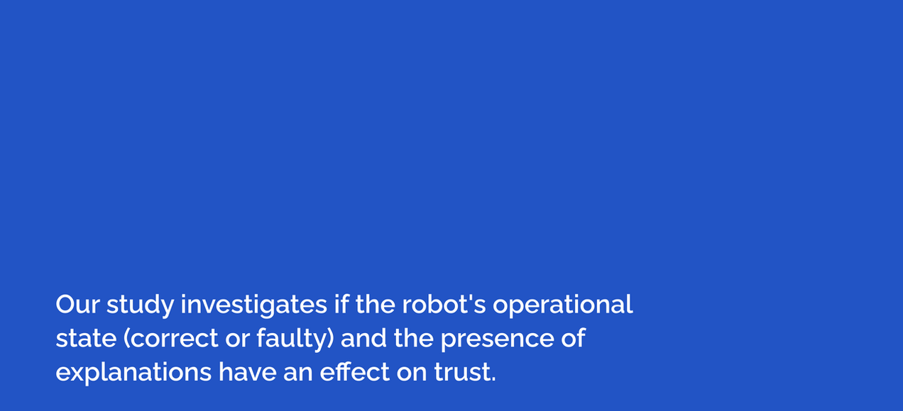 The study was inspired by and serves as a conceptual replication of the work by Maha Salem et al., titled Would You Trust a (Faulty) Robot? Effects of Error, Task Type and Personality on Human-Robot Cooperation and Trust (IEEE). Their findings indicated that while a robot's errors influenced perceptions of trust and reliability, it did not necessarily prevent people from following its suggestions. Our goal was to explore these effects in a new task context, and examine how explanation and error together shape trust and cooperation.
